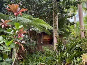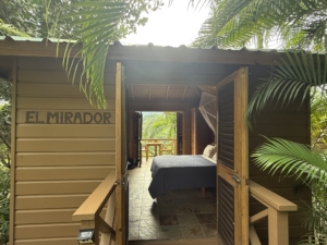 Perched high above an outcropping of boulders, El Mirador (The Lookout) is named for its view of the rainforest peaks. The treehouse features 144 square feet of interior space and an 84-square-foot balcony with a commanding view of El Yunque rainforest. The private bath is on the main level and is reached by a footbridge from the balcony. It offers a slate interior, high-end fixtures and a rain shower with an equally commanding view of the rainforest. El Mirador also gives guests a shady retreat with its own garden. See more photos below.